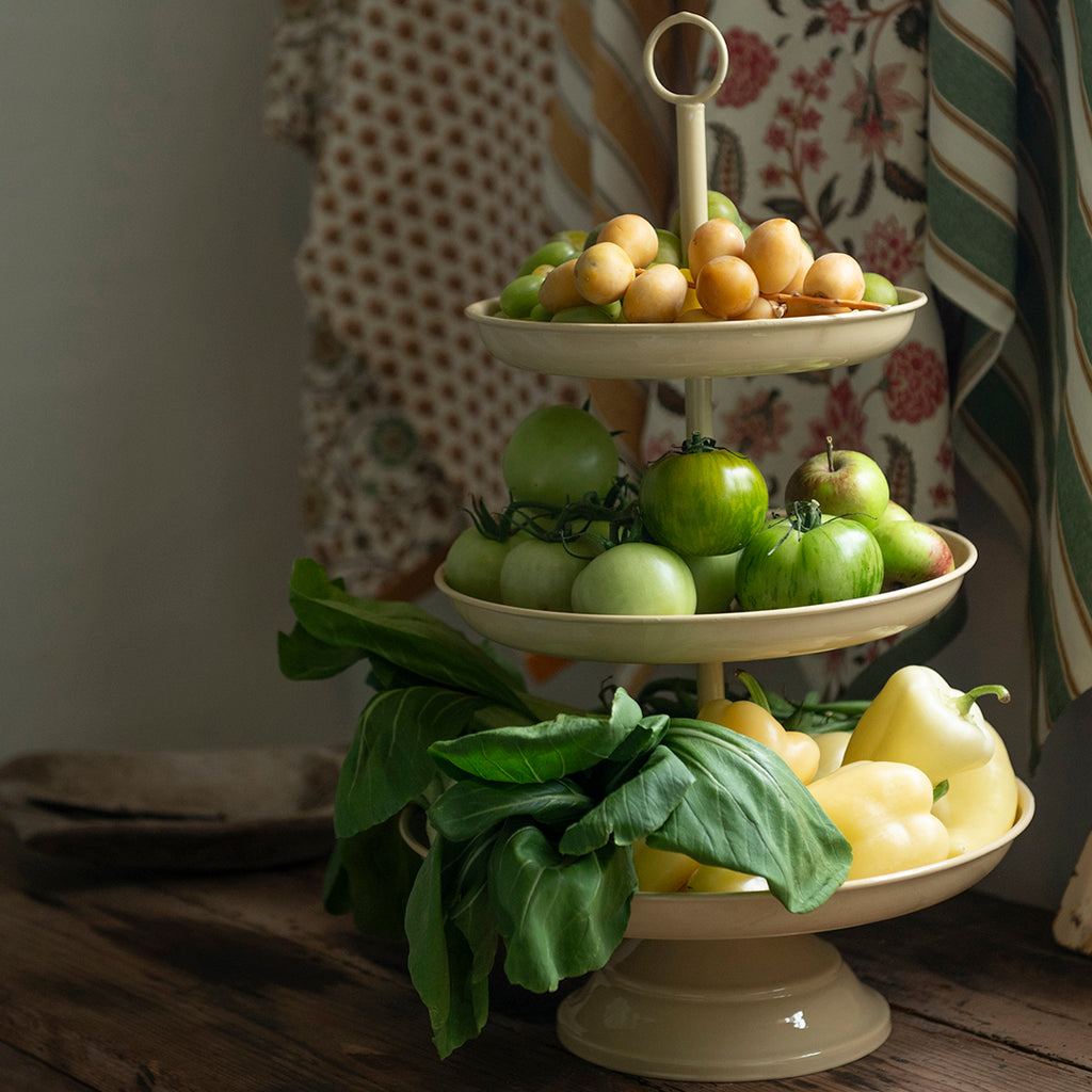Serve your afternoon high tea - freshly cut sandwiches and home baked cakes - in style with this elegant table centre piece. Our three tier etagere has been finished with a high gloss enamel paint.
