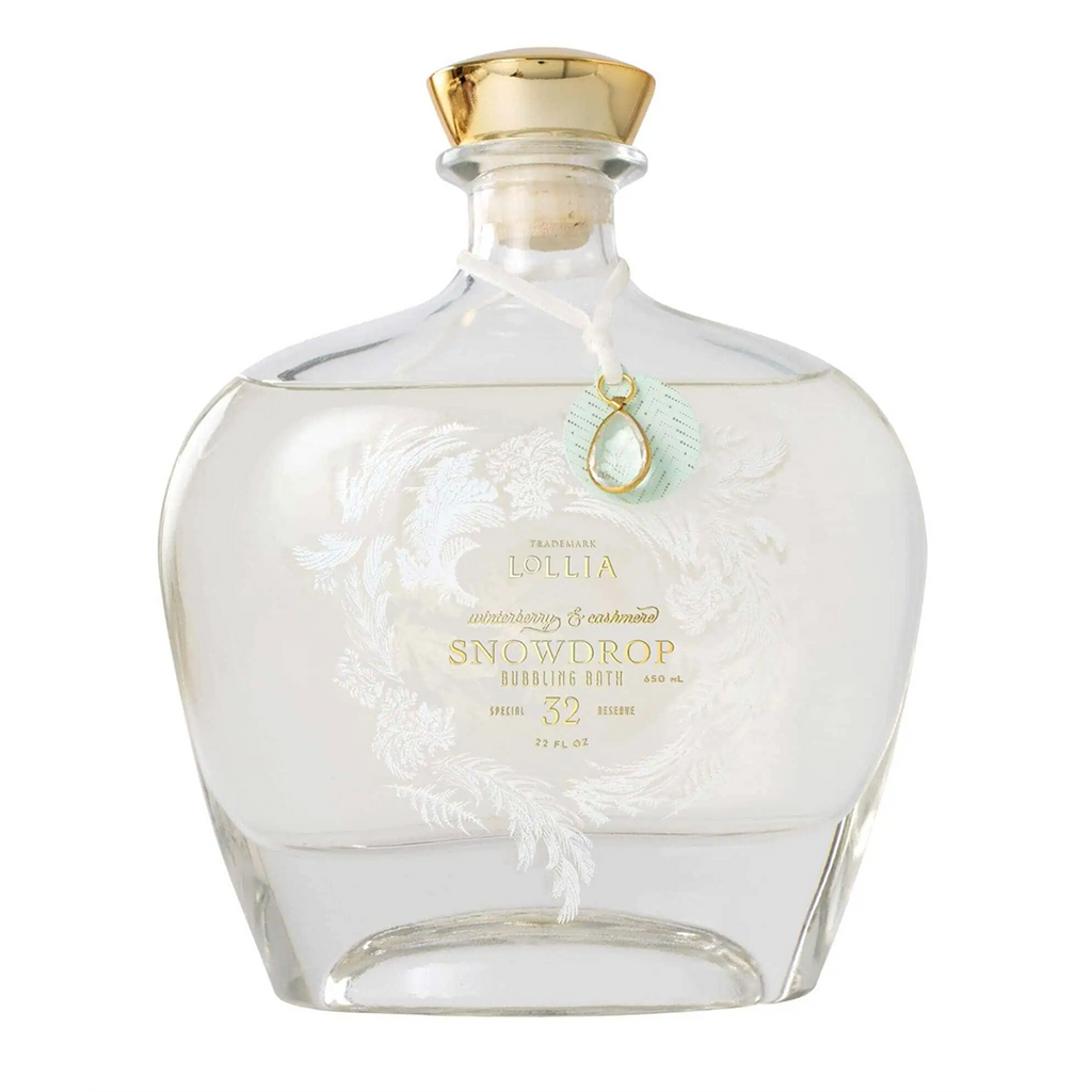 Absolutely stunning glass bottle containing 'Snowdrop' from LOLLIA complete with a pendant hanging from the bottles neck. Perfumed with Winterberry and Cashmere. An ideal gift for the person that appreciated lovely things.