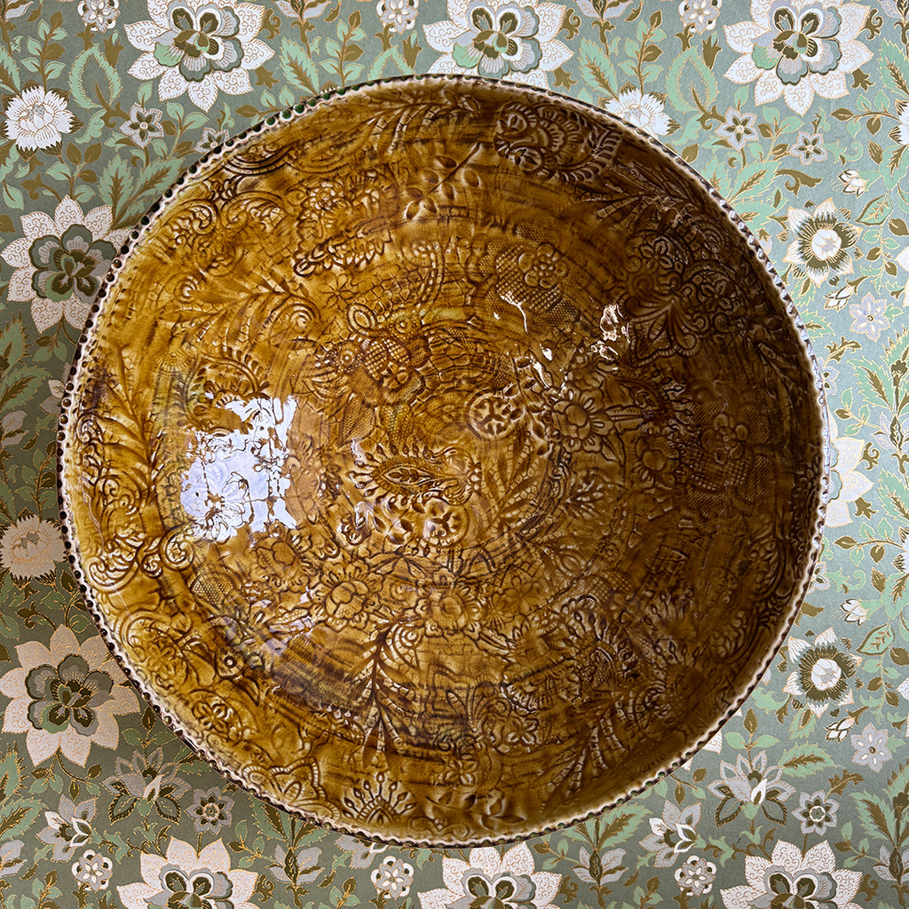A beautiful serving bowl from the creative studio of Sthal. Made from durable white stoneware, it is exquisitely decorated with an arabesque design and a glossy crackle glaze finish. Each piece is unique.