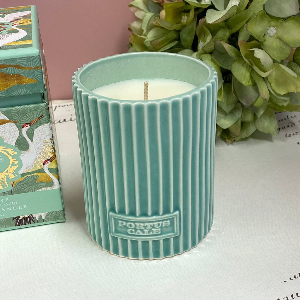 Made from a natural blend of vegetable waxes, mineral high-grade paraffin and essential oils, the wax is hand poured in a ceramic container with fluted effect, handmade by master ceramists.