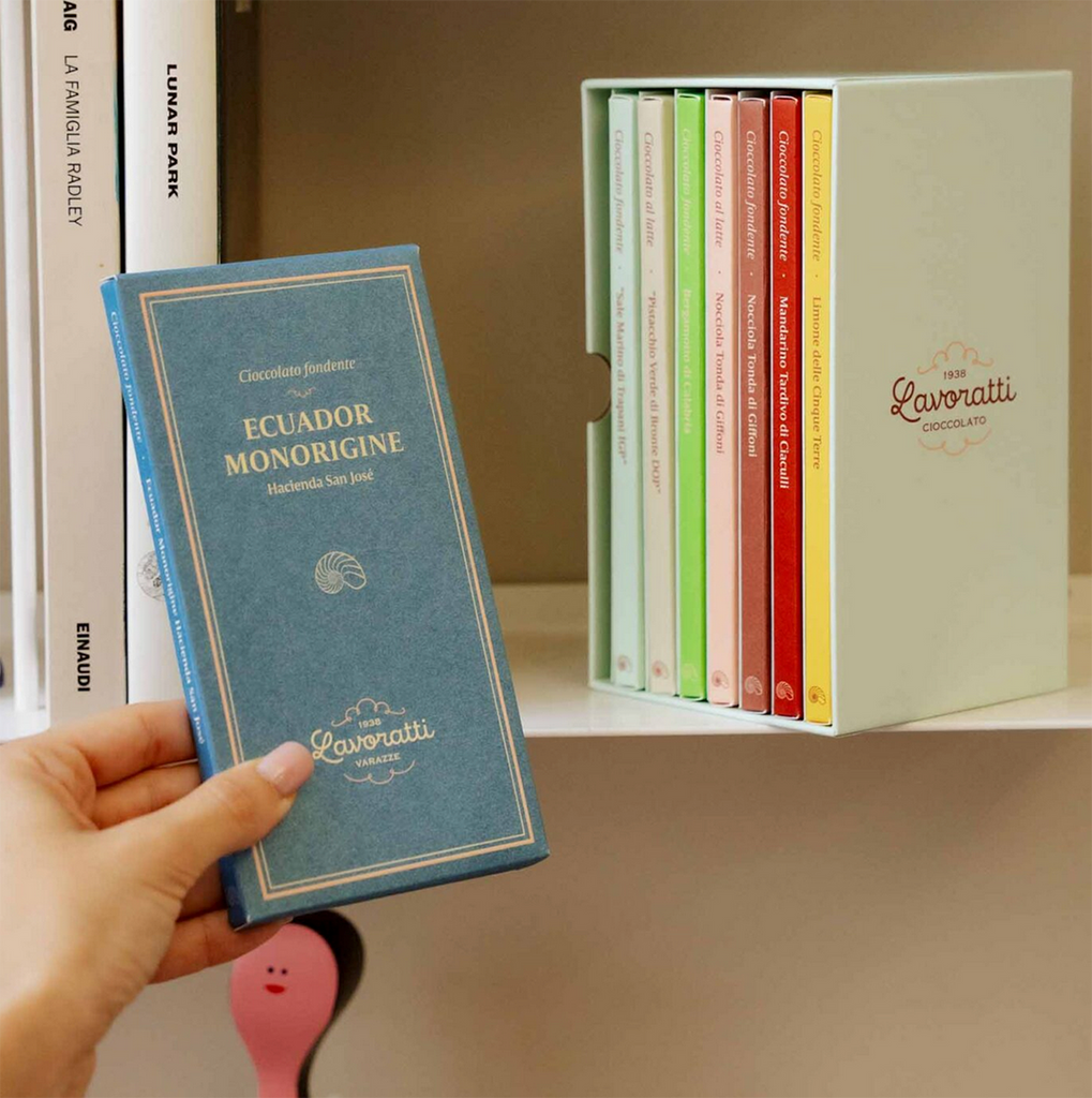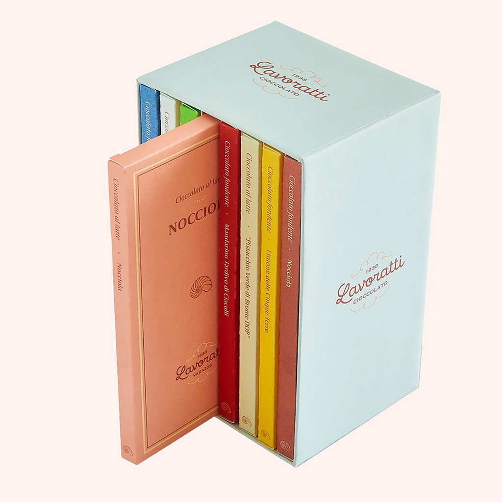 The library collection is such a great gift idea. This selection includes special flavors, such as 80% Ecuador chocolate, Sea salt, Pistachio, Hazelnut, Milk Hazelnut and Mandarin chocolate ingredients chosen for an authentic and refined taste experience.