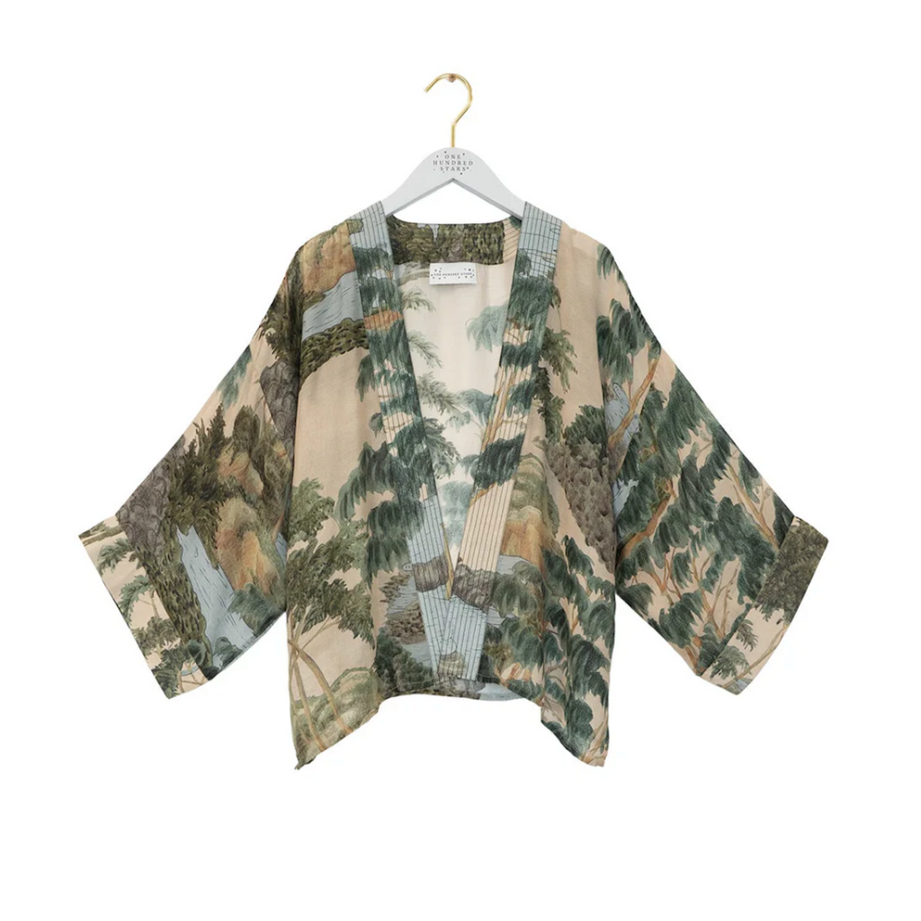 Short 'Rivers and Trees Natural' Kimono Jacket by One Hundred Stars