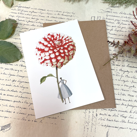 Greeting Card 'Red & White Dahlia' by Laura Stoddart
