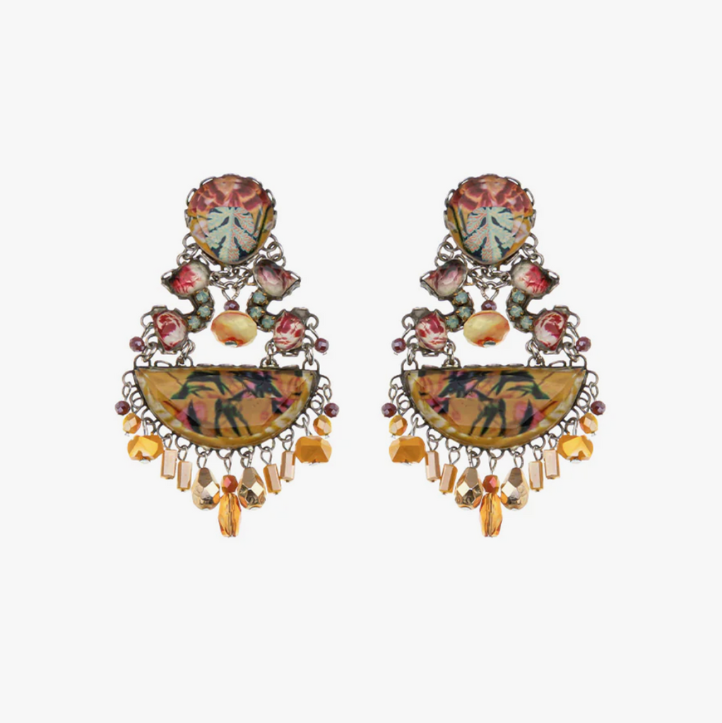 A Selection of Materials Used: Semi-precious stones, faceted glass, fabric inlays, seed pearls, seed beads, silver-plated brass, metal alloys. Nickel and lead free.