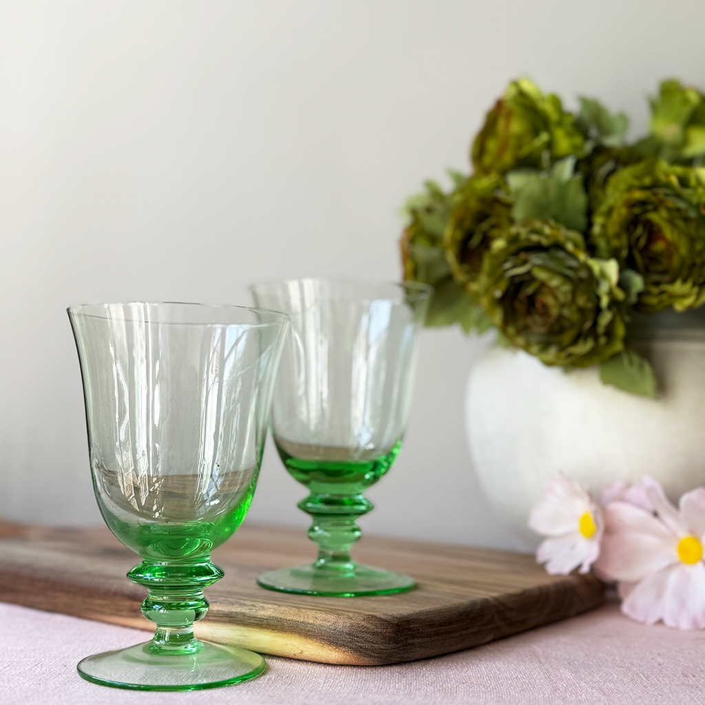 Handmade, short stemmed water, wine or beer glasses. Perfect for all occasions. Sold in two's.