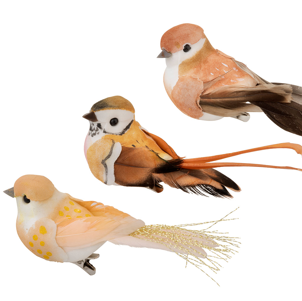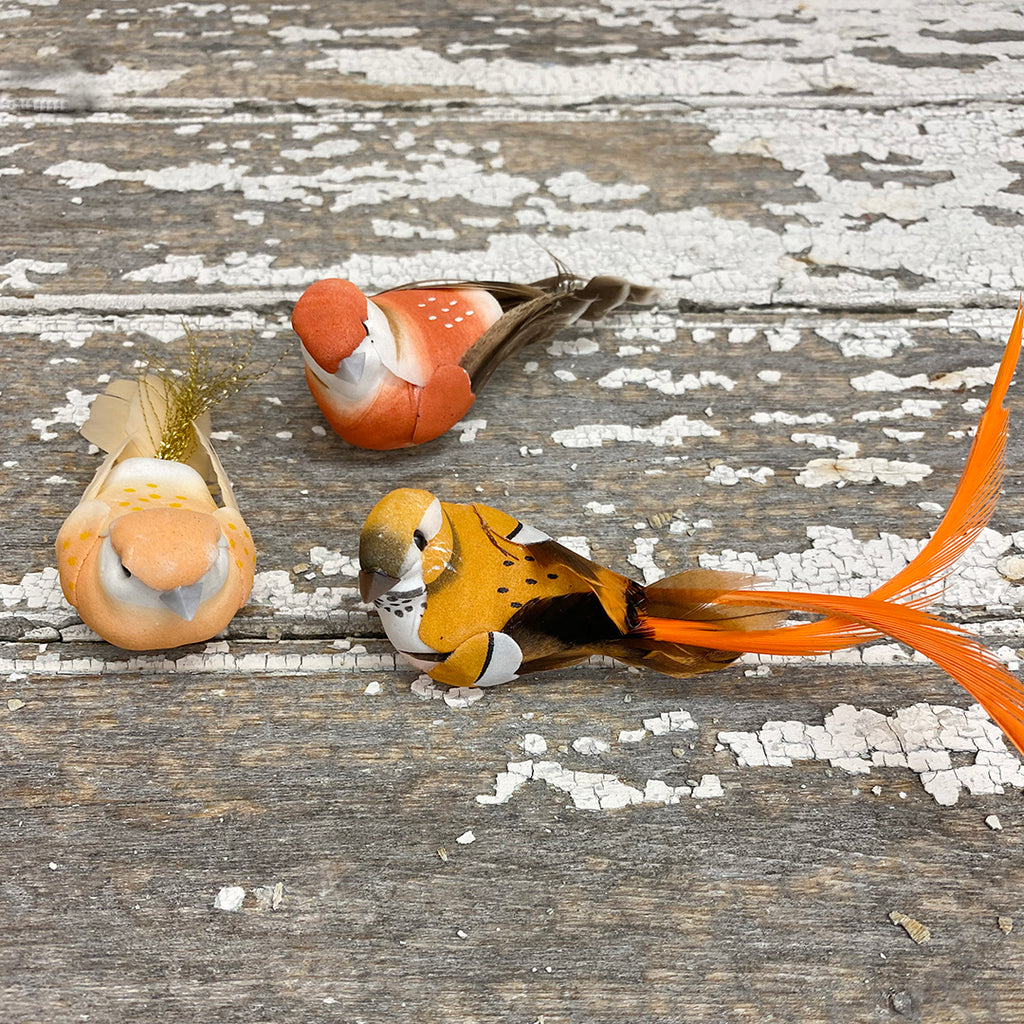 Very sweet little set of 3 clip on feather birds, adorn your table-scape, Easter, Wedding table with these cute feathered friends.