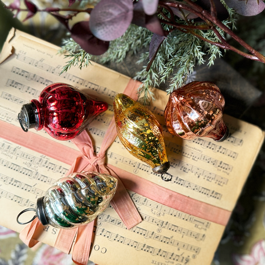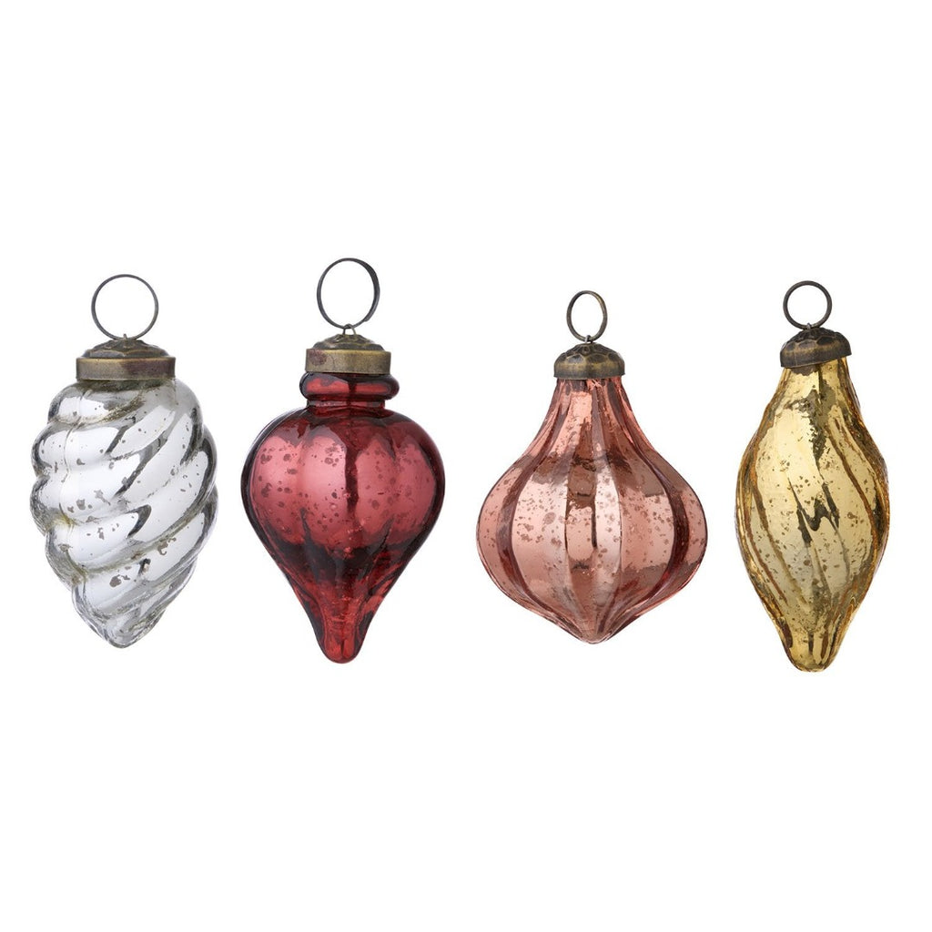 Stunning handmade glass Christmas tree decorations. Suspend with matching or contrasting quality ribbon available in our store or on our website. Set of four.