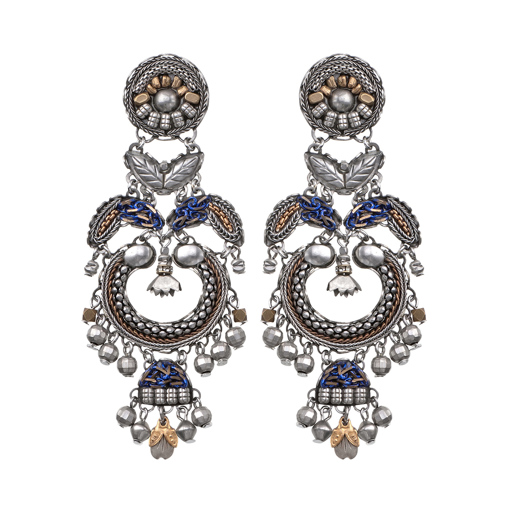 Skilfully made by hand, these quality earrings feature an intricate display of semi-precious stones and fabric inlays.