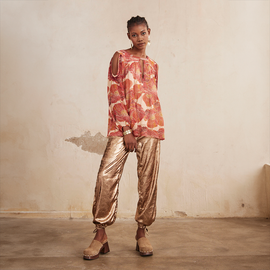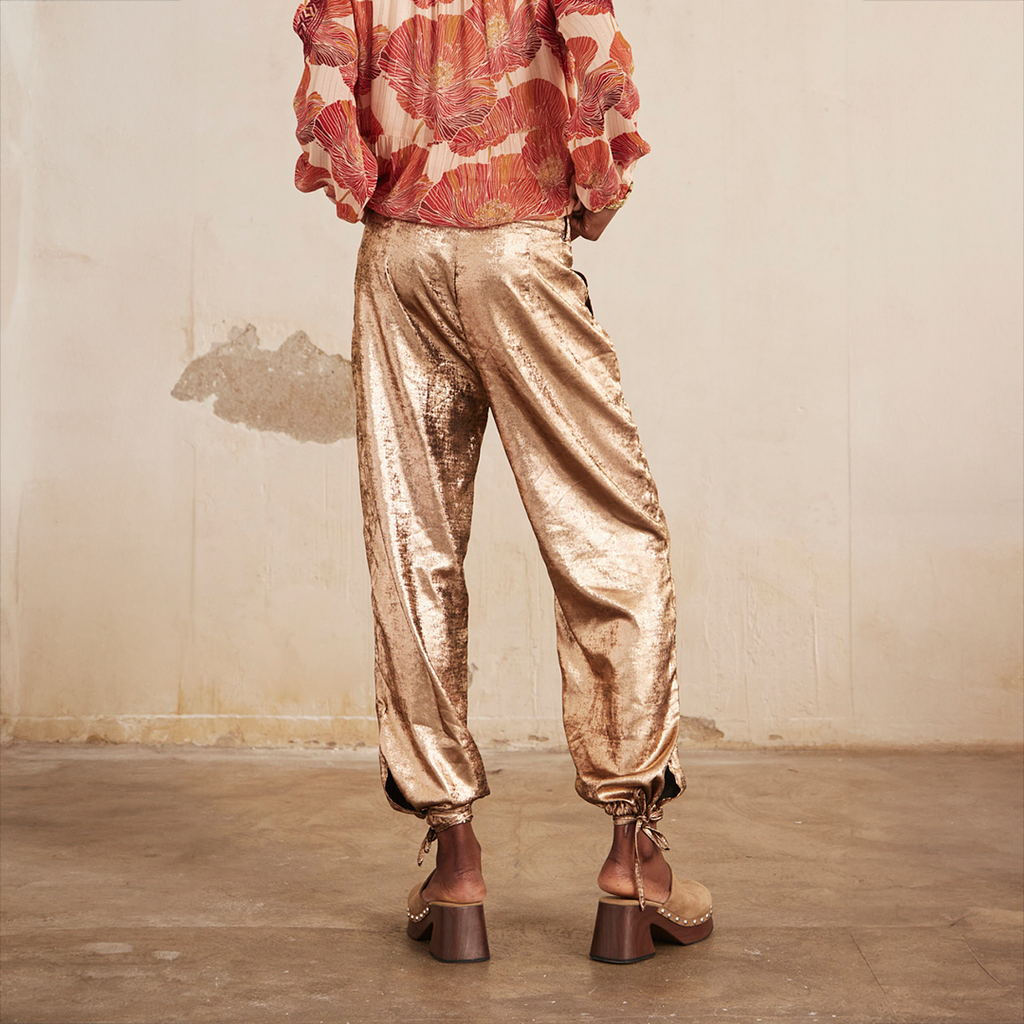 Gold Rose 'Jatziri' fluid pants with drawstring adjustment at the ankles.