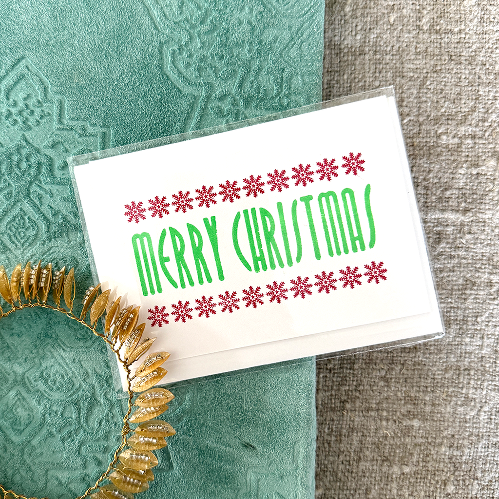 Greeting Card 'Green Merry Christmas with Red Snowflakes' by Cold Ash Press