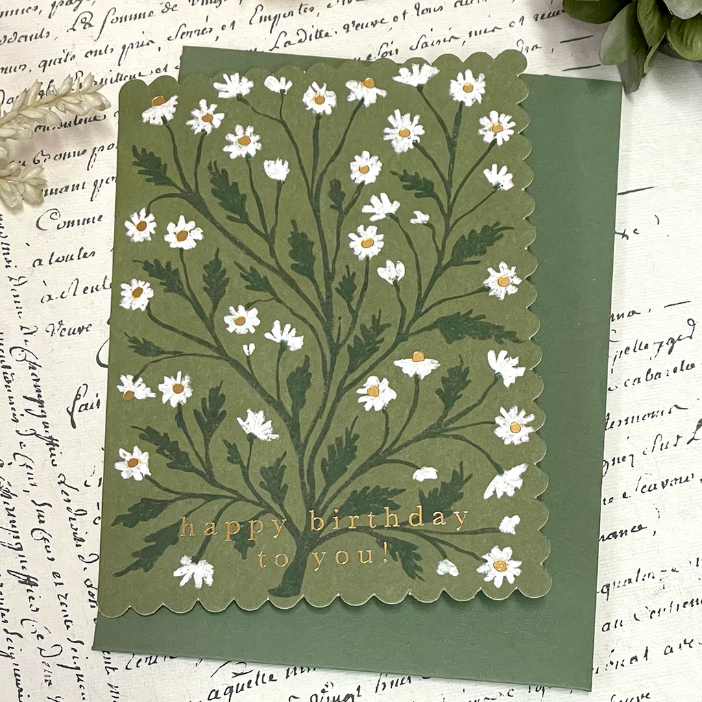 Printed by hand on a vintage printing press, this greeting card features an artistic illustration with delicate gold foil lettering. Paired with a luxury envelope.