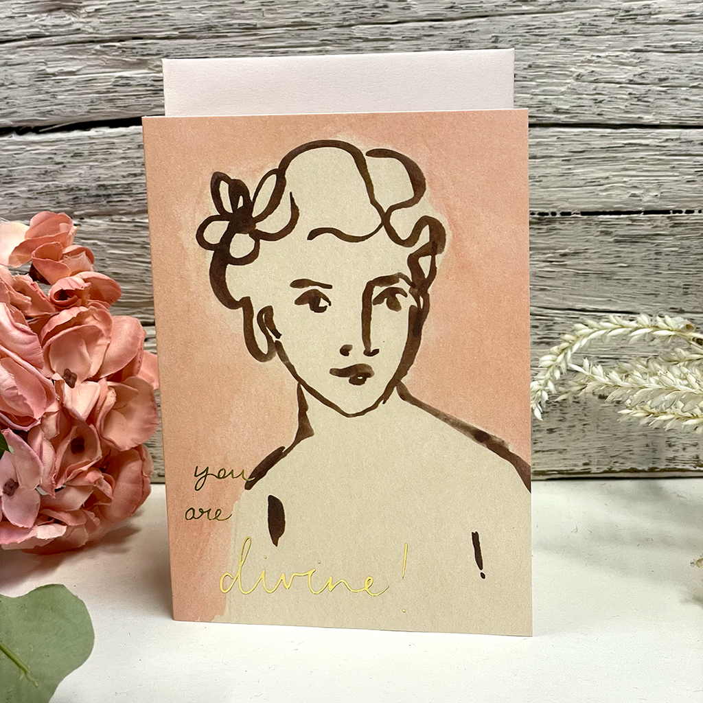 Printed by hand on a vintage printing press, this greeting card features an artistic illustration with delicate gold foil lettering. Paired with a luxury envelope.