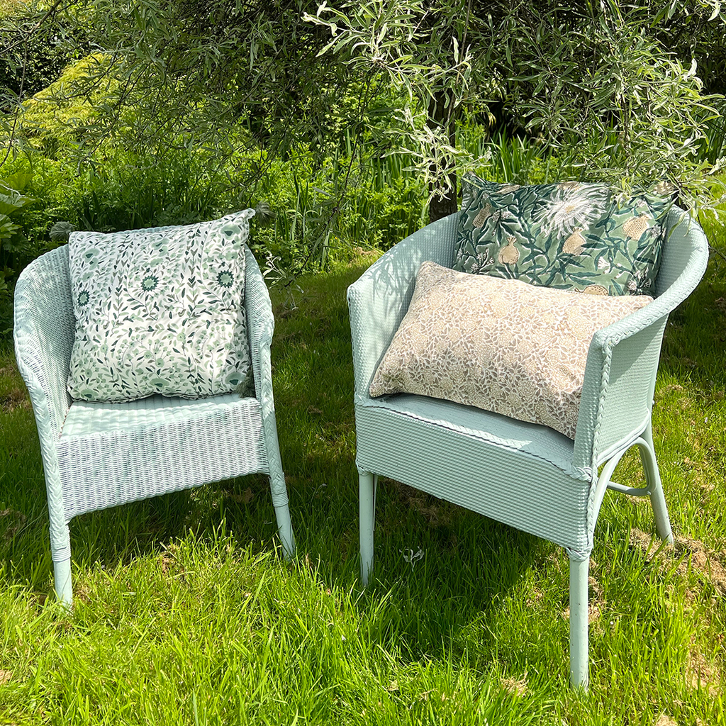 Hand Block Printed 'Kollam Jade' Cotton Cushion with Tassels by Bungalow of Denmark