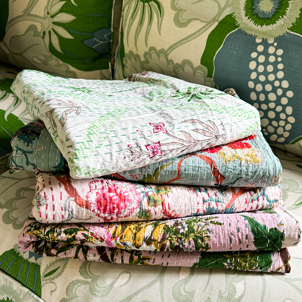 This lovely and lightweight, hand block printed and hand stitched 'Kantha' throw is the perfect accompaniment to your summer bedding. Originating in Bengal, with a similar concept to our own 'patchwork' quilts, all you do is pop on top of a linen sheet for a cool and restful nights sleep.