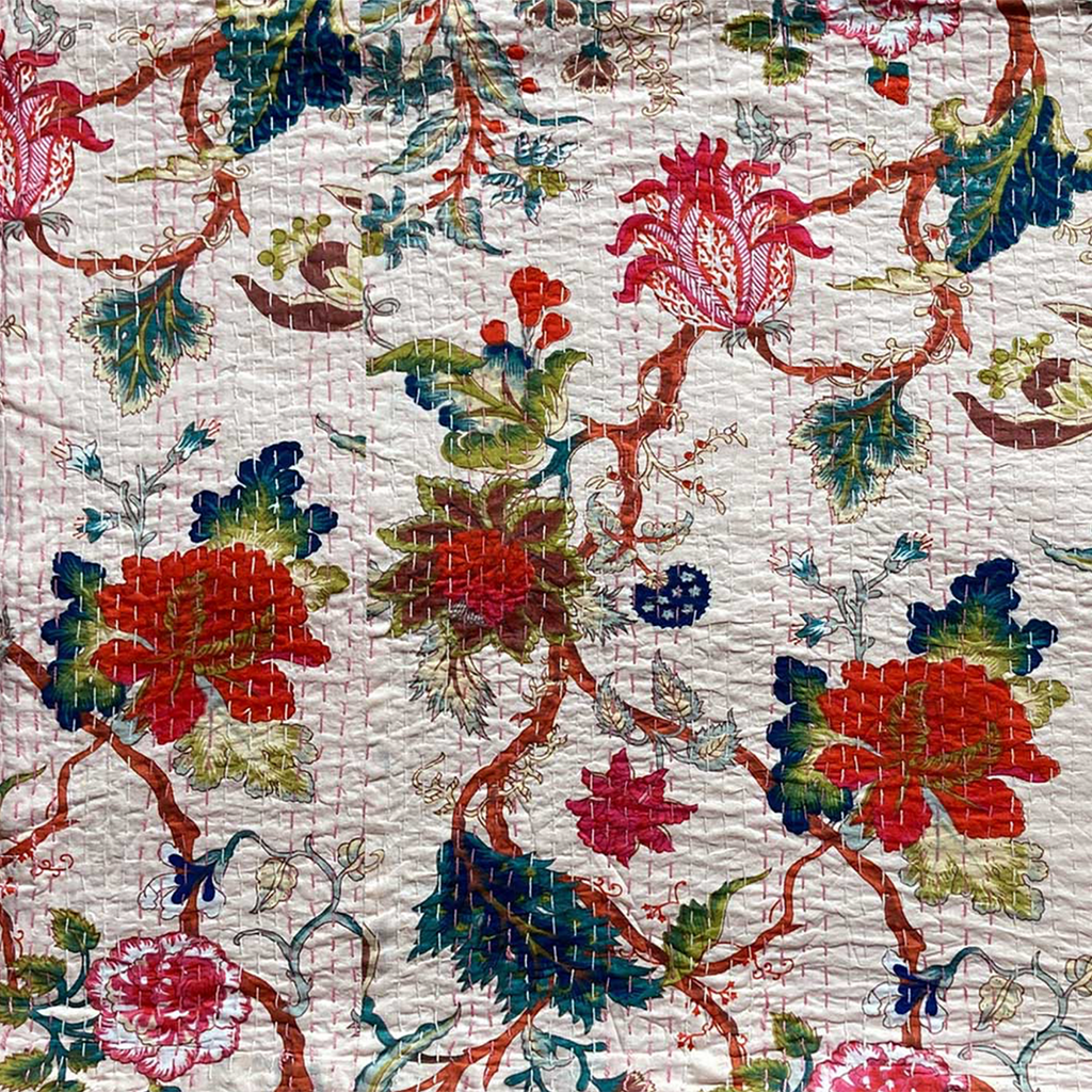Hand Stitched 'Kantha' Throw 'Pink Exotic Flower' by Powell Craft
