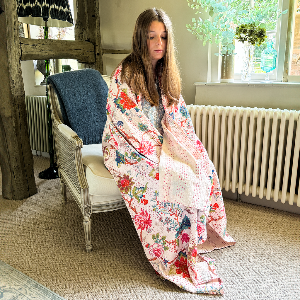 This lovely and lightweight, hand block printed and hand stitched 'Kantha' throw is the perfect accompaniment to your summer bedding. Originating in Bengal, with a similar concept to our own 'patchwork' quilts, all you do is pop on top of a linen sheet for a cool and restful nights sleep.