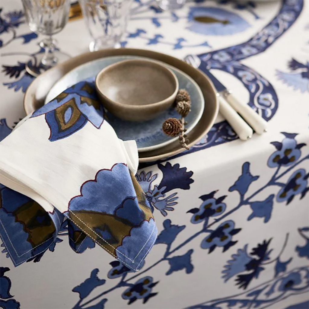 Fabulous hand block printed napkins, made from quality cotton. The outer edge has been finished with double stitching. Complete your dining table look with a matching or toning tablecloth - all available in our shop and on our website.