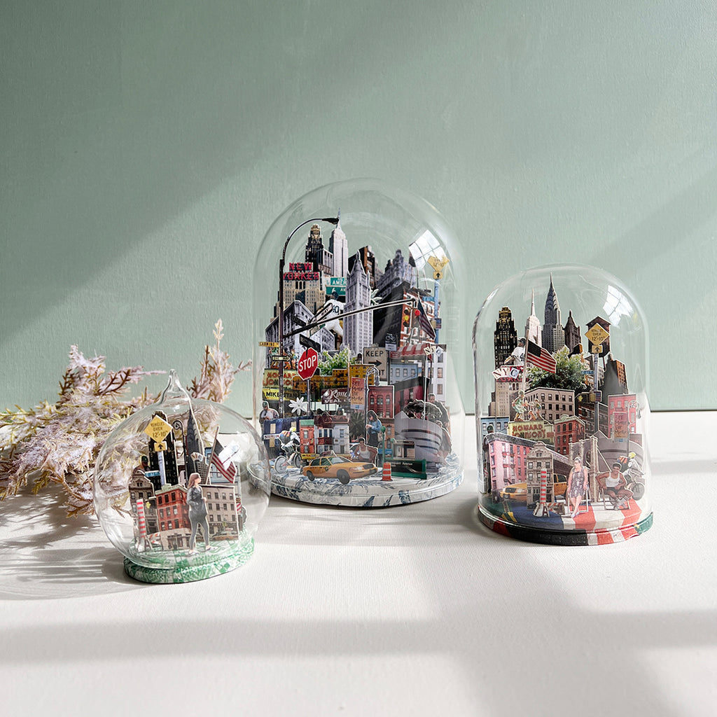Handmade and hand cut out quirky and intricate city scapes, evoking special memories of places visited and explored and weaving emotions through the narrative.