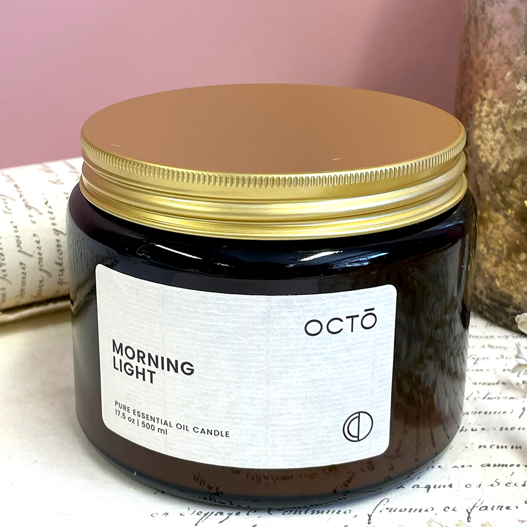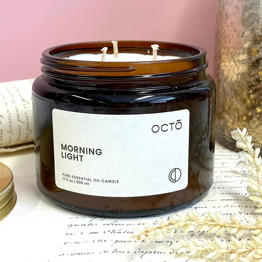 The Morning Light candle scent has a wonderful uplifting effect on the mind and body, with the exciting citrusy, peppery and fresh combination of Neroli, Basil and Lime.