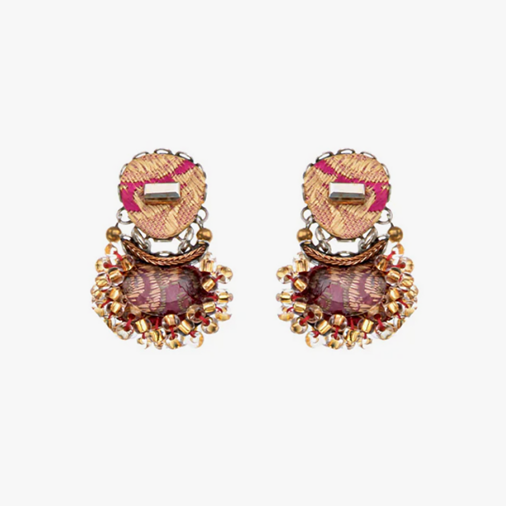 A Selection of Materials Used: Semi-precious stones, faceted glass, fabric inlays, seed pearls, seed beads, silver-plated brass, metal alloys. Nickel and lead free.