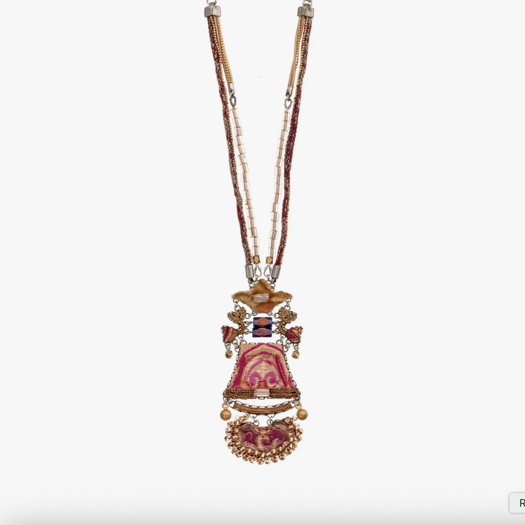 A Selection of Materials Used: Semi-precious stones, faceted glass, fabric inlays, seed pearls, seed beads, silver-plated brass, metal alloys. Nickel and lead free.