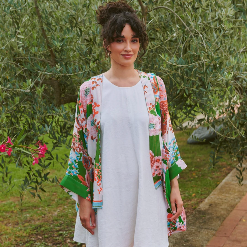 Short 'Kitsch Bouquet Green' Kimono Jacket by One Hundred Stars