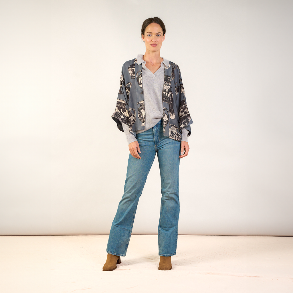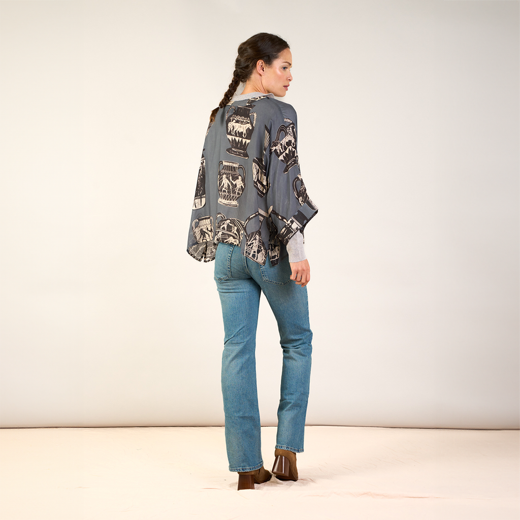 Our short Kimono is a sophisticated and contemporary alternative to a cardigan. Wear simply over a shift dress or trousers.