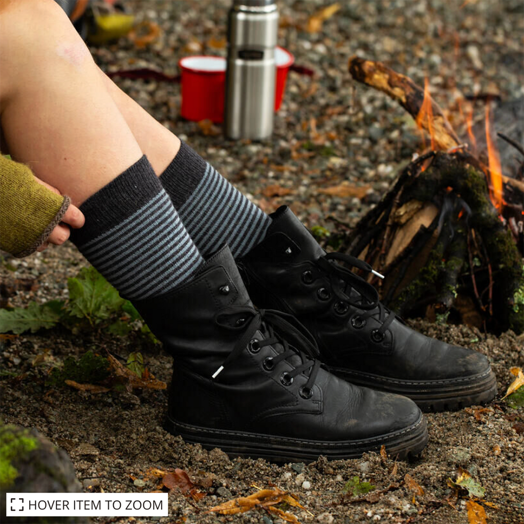These elegant, striped Alpaca socks are a gorgeous blend of finest micron baby alpaca blended with a little bamboo viscose, which allows your feet to stay cool in summer and warm in winter. Treat your feet!