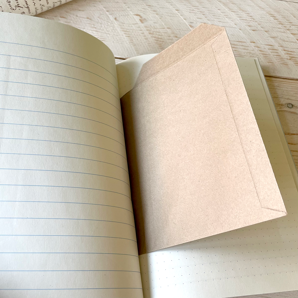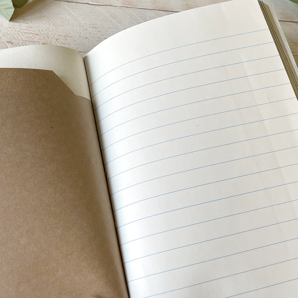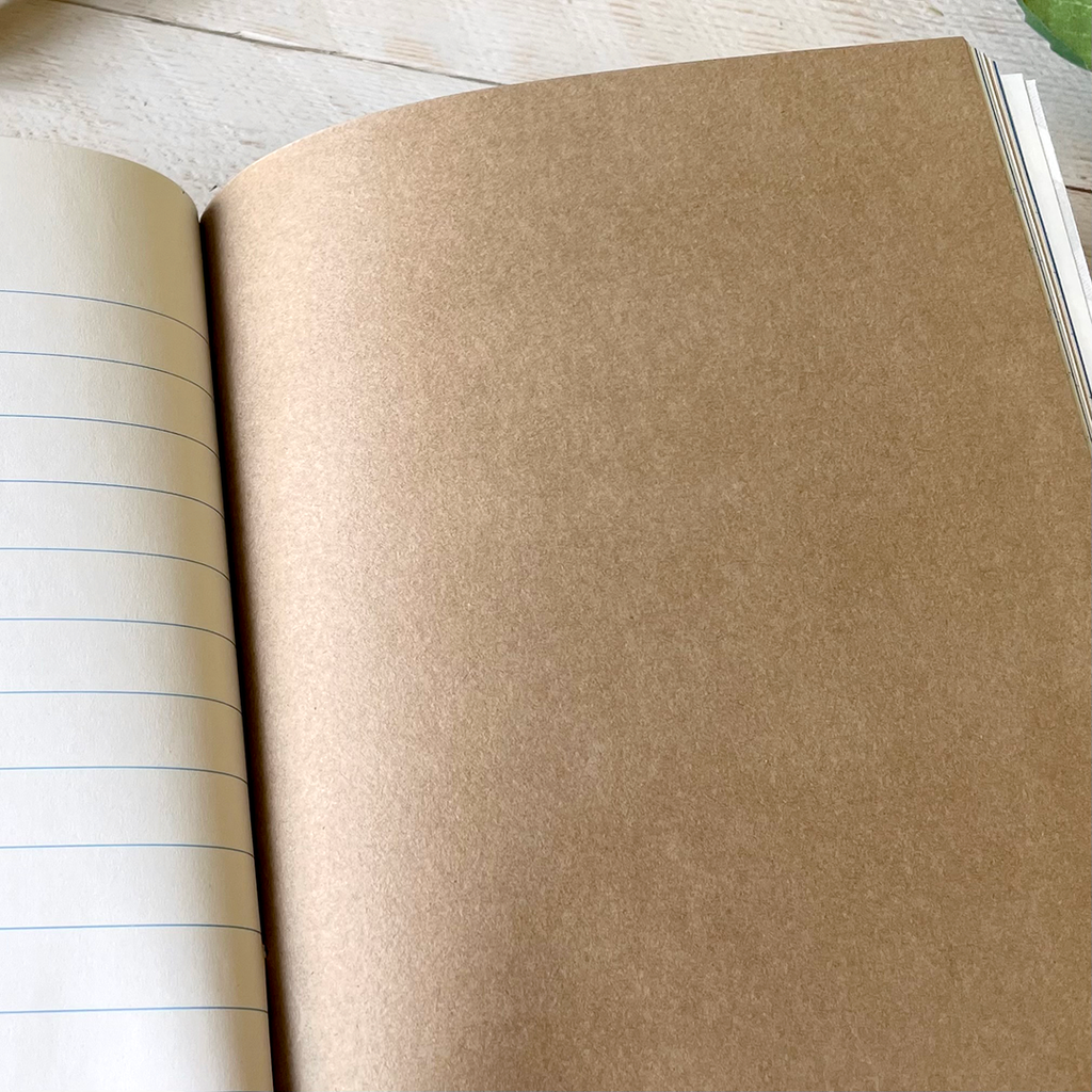 Made from 100% recycled papers the journal contains approximately 232 pages of plain, lined, dot matrix, framed and Kraft paper.